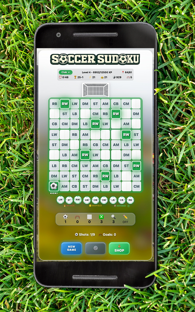 Solve soccer-themed Sudoku puzzles, climb the ranks, and make this your new daily ritual.